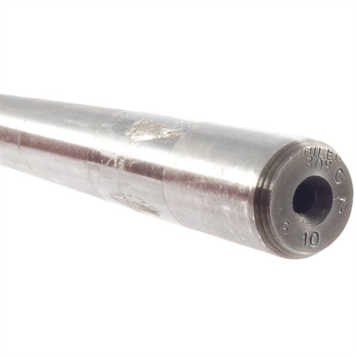Shilen-Läufe, ob Chrome Moly oder Edelstahl, werden mit sechs Zügen und Feldern durch das „Cold Forming“-Verfahren unter Verwendung von Hartmetallformen, die in Shilens eigenem Werk unter den strengsten Kontrollen hergestellt werden, gezogen. Diese Riffelungsmethode erreicht eine extrem enge Innenuniformität vom Patronenlager bis zur Mündung. Fertige Läufe werden mit einem Luftmessgerät inspiziert (die Empfindlichkeit beträgt .00005" - fünf Hunderttausendstel!) und mit einem 6X-Borescope überprüft. Alle Läufe von .22 bis .30 Kaliber haben Toleranzen von .0005" und eine Uniformität von .0003". Es wird keine Begradigung vorgenommen, und alle Läufe sind vollständig spannungsfrei. Alle Edelstahl-Läufe werden im Werk von Hand geschliffen.