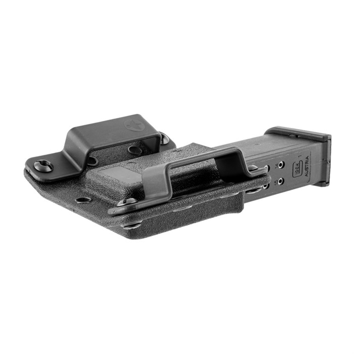 The Copia magazine carriers are premium, duty-grade, injection-molded magazine carriers designed for hard-use, daily concealed carry. Their innovative cavity design and retention system allows them to be used ambidextrously with the double-stack magazines of nearly 100 different handgun models chambered in 9/40/357 Sig. They are available in singles or doubles, and have a body-hugging contour which is not only more comfortable than traditional magazine carriers; it is also more concealable. Shooters can also select between the standard tall body-style, which is compatible with all of Raven Concealments modular belt attachments, or short body-style which only works with their closed loops and QMS. Finally, you can buy one pistol magazine carrier that will work with nearly all the handguns in your collection! Just some of the models we have found to fit the Copia are: Glock 9/40 Smith & Wesson 9/40 Sig Sauer 229, 226, 320 CZ P-09, P-07, 75B Heckler & Koch VP9, P30, P2000 Beretta M9, 92, 96, PX4 FN FNP, FNX, FNS 9 Springfield Armory XD 9/40, XDM 9/40 Styer 9/40 Browning Hi-Power