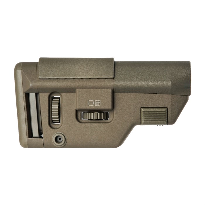Der B5 Systems Precision Stock wird in zwei Modellen angeboten: eines speziell für das AR-15 und eines für die ARs in 7.62 oder 6.5CM. Der Unterschied zwischen den beiden liegt in der Länge des Wangenstücks, wobei jedes Modell eine plattformgerechte volle Nutzung des Charging Handles mit dem Wangenstück in erhöhter Position ermöglicht.