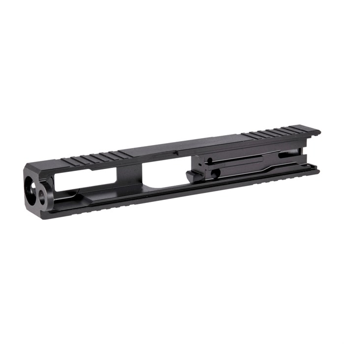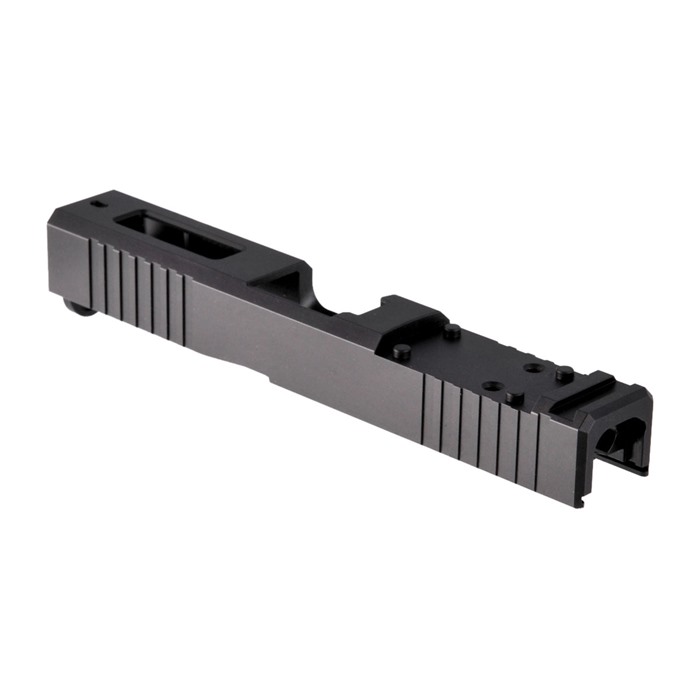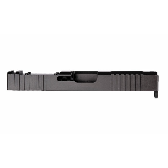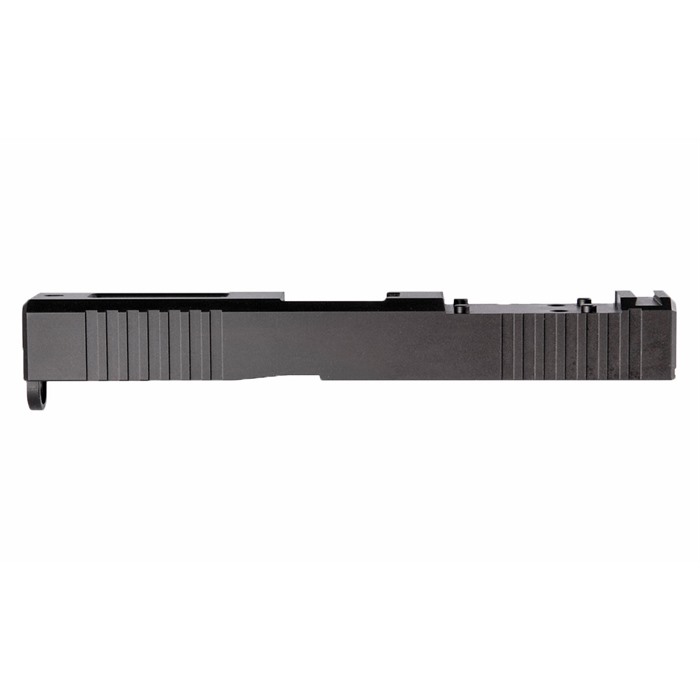 Our Leupold Delta Point Pro Cut Slide for Glock® 19 Gen3 pistols features distinctive, wraparound front cocking serrations that aid in manipulating the slide to check the chamber or clear a jam. (OK, we’ll admit it: the serrations just look cool, too.) It also comes with a pre-cut slot for easy, secure mounting of a Leupold Delta Point Pro or compatible footprint red dot sight. All DPP Slides also have standard Glock® factory front and rear sight dovetails for "iron" backup sights. To get proper co-witnessing with the DPP, you will need to also install suppressor-height iron sights. You can also get your Brownells DPP Slide for Glock® 19 Gen3 with a "window" cutout on top that enhances airflow to keep the barrel cool - ideal for hard-working action competition pistols. Plus, if you have an upgraded barrel with a contrasting finish or a unique exterior pattern (fluting, spirals, "flames," etc.) the window lets you show it off a bit! Each DPP Slide for Glock® starts life as a billet of 17-4 stainless steel that is machined to Glock® factory specifications inside, so it’ll fit factory frames and accept factory or aftermarket barrels and Gen3 internal parts. Slides are heat-treated to Rc 41-44 on the Rockwell C scale for added surface hardness and wear resistance. Fits Gen3 Glock® 19 pistols & clones Machined from corrosion-resistant 17-4 stainless steel billet Leupold Delta Point Pro footprint Plus factory front/rear sight cuts Available with distinctive top Window cutout or traditional Solid top A Brownells DPP Slide is the ideal upgrade for your factory Glock® 19 Gen3 pistol. Brownells Gun Tech™ Note: Channel liner required for these slides. Channel liner is a press fit and requires a tool to install. We recommend #777-100-017. Includes patented optic cut technology pioneered by ZEV Technologies. Patent No. RE47335