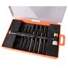 011516812988 Kompaktes Set beliebter Stempelgrößen, inklusive Hammer, das in seinem eigenen Werkstattblock für schnellen Zugriff aufbewahrt wird. Der kombinierte Messing/Nylon Hammer hat einen maschinell geriffelten Griff für einen sicheren Halt. Stempel aus 4130 Stahl.Lieferzeit ca. 14-21 Werktage.