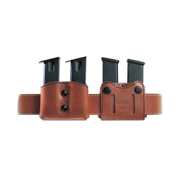 Der DOUBLE MAG CARRIER von GALCO INTERNATIONAL ist ein außergewöhnliches Tragesystem, das sich durch ein einzigartiges Wrap-around-Design auszeichnet. Mit zwei einseitigen Snaps auf der Rückseite kannst du ihn vertikal an deinem Gürtel befestigen.