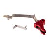 Installing a Red Flat-Faced Trigger Kit from Agency Arms is the quickest, easiest way to make a major upgrade to the performance of your Glock. By a special arrangement with the folks at Agency, Brownells is the ONLY place where you want get this special edition of the flat-faced trigger with an eye-catching, red anodized finish on the trigger shoe. The Red Flat-Face Trigger is a drop-in upgrade - meaning you can do it yourself in a few minutes - that gives your Glock a noticeably smoother trigger pull with minimal pre-travel and a short, snappy, positive reset. Easy, fast drop-in installation Function of critical factory safety lever in trigger face is fully maintained Sturdy all-aluminum trigger shoe has excellent, stable feel Flat face gives the shooter excellent control through entire pull arc Distinct tactile & audible signal when trigger is reset Separate models for Gen1-4 standard frame pistols, new Gen5 pistols, and the G43 Many precision shooters prefer the flat-faced trigger shoe since it reduces the contact area between the finger and trigger. This gives you better control throughout the pull and lets you control perceived pull weight by positioning your finger higher or lower on the shoe for the precise amount of leverage. A "toe" at the bottom of the shoe serves as an indexing point so you won’t put your finger TOO far down. The Red Flat-Face Trigger Kit for Glock is available in 3 configurations: Gen1-4 fits Generation 1 through 4 standard frame pistols chambered in 9mm, .357 SIG and .40 S&W. There's a separate model just for the G43, and the Gen5 model fits ONLY the recent Gen5 G17, 19, 19X, 26 and 34 pistols.