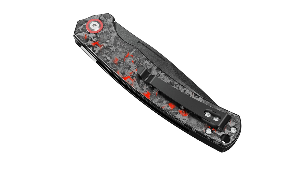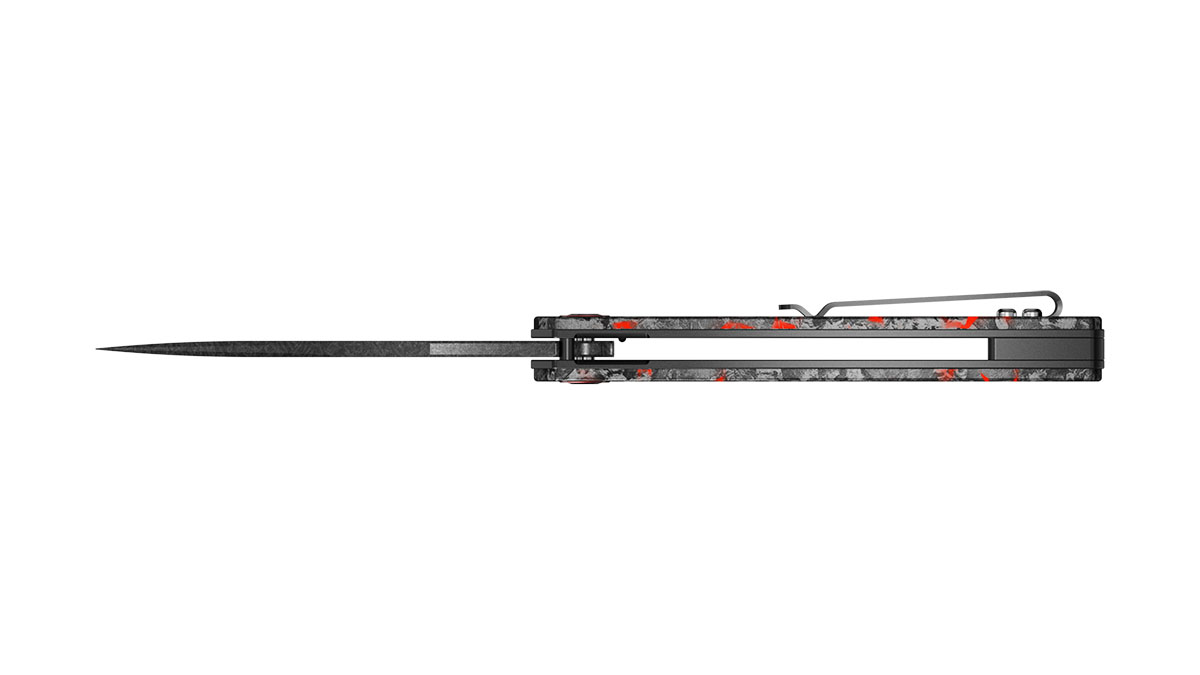 Doch es ist der Griff, der dieses Messer hervorhebt. Er besteht aus geschmiedetem Kohlenstofffaser, inspiriert von dem gleichen Material, das wir in unserem Yggdrasil Precision Tripod verwenden. Leicht, unglaublich stark und mit einer einzigartigen marmorierten Struktur – jeder Griff ist visuell einzigartig.