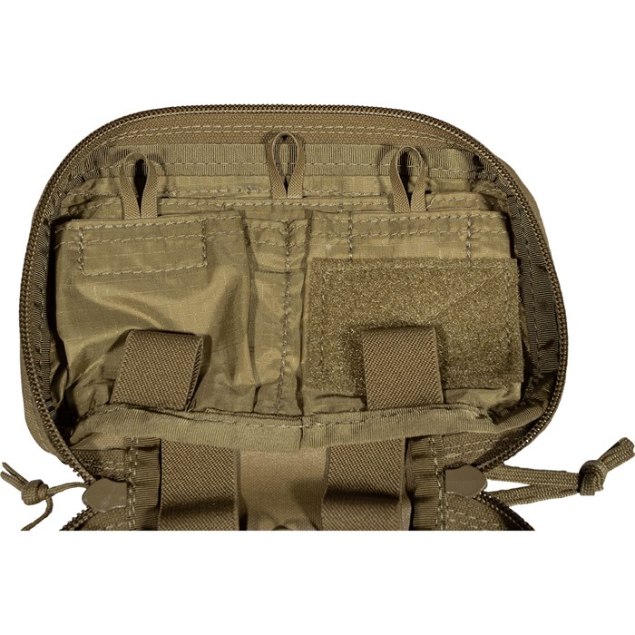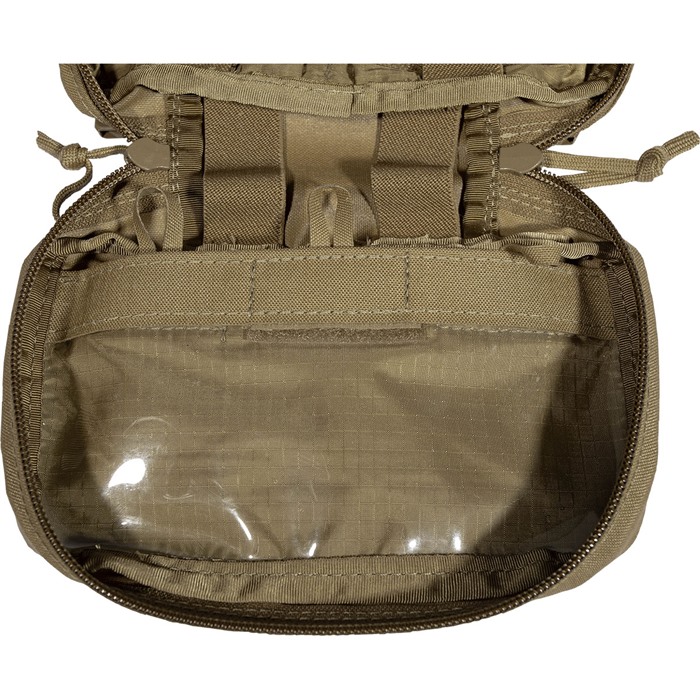 Dieses Pouch kann eine Menge kleiner Ausrüstungsgegenstände aufnehmen, die so organisiert sind, dass du sie schnell zur Hand hast, wenn du sie brauchst. Im Inneren findest du: