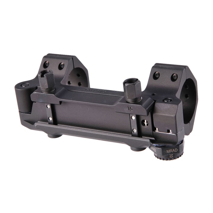 - Stelle die Neigung der Montage in 10erSchritten von 0 bis 70 MOA ein, um den Geschossabfall auszugleichen.