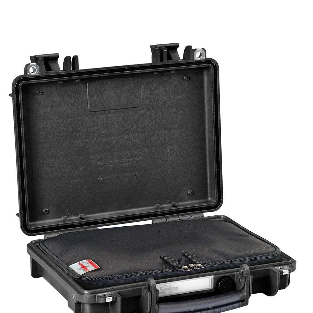 810050160469 Der bestmögliche Schutz für Dein bestes Stück - Der ultimative Waffenkoffer mit einer Vielzahl von Funktionen in höchster Qualität, hergestellt von Explorer Cases in Italien. Spezifikationen: Länge: 326mm (300mm innen) Breite: 269mm (210mm innen) Tiefe: 75mm (58mm innen) Gewicht: 1,20kg (1,10kg Leergewicht ohne Einlage) Farbe: Schwarz Einlage: inkl. Waffentasche Nicht zu verwüsten Die Waffenkoffer von Explorer Cases verfügen über korrosionsbeständige Metallscharniere, welche den Deckel zudem in der gewählten Position fixieren. Sei Dir sicher, dieser Waffenkoffer wird sehr lange dein Begleiter sein. Dank der hochwertigen Verschlussriegel sind die Waffenkoffer immer perfekt gesichert. Die O-Ring Dichtung macht sie zudem in hohem Maße wasserdicht. Alle Waffenkoffer sind mit einem manuellen Druckausgleichungsventil ausgestattet. Daher kannst Du sicherstellen, dass genügend Luft aus dem Gehäuse austritt, damit Du keine Probleme haben wirst, den Koffer zu schließen. Genauso wie Du es möchtest Die Gehäuse sind mit internen Aussparungen für optionale interne Halterungen oder Montageringe versehen, sodass Du alles genau so aufbewahren kannst, wie es für deine Anforderungen am geeignetsten ist. Jeder einzelne Koffer kommt mit einem wasserfesten abnehmbaren PVC-Etikett, mit welchem du deine Ausrüstung beschriften kannst oder deine Daten hinterlegen kannst. Der Koffer kann entweder traditionell über den großen Frontgriff oder über optional erhältliche Schultergurte, welche sich ganz einfach an jedem Modell befestigen lassen, transportiert werden. Die 3005 Serie ist zudem für den Transport im Flugzeug optimiert.Nachbestellt, Lieferzeit ca. 4-12 Wochen aus dem Lager Europa.