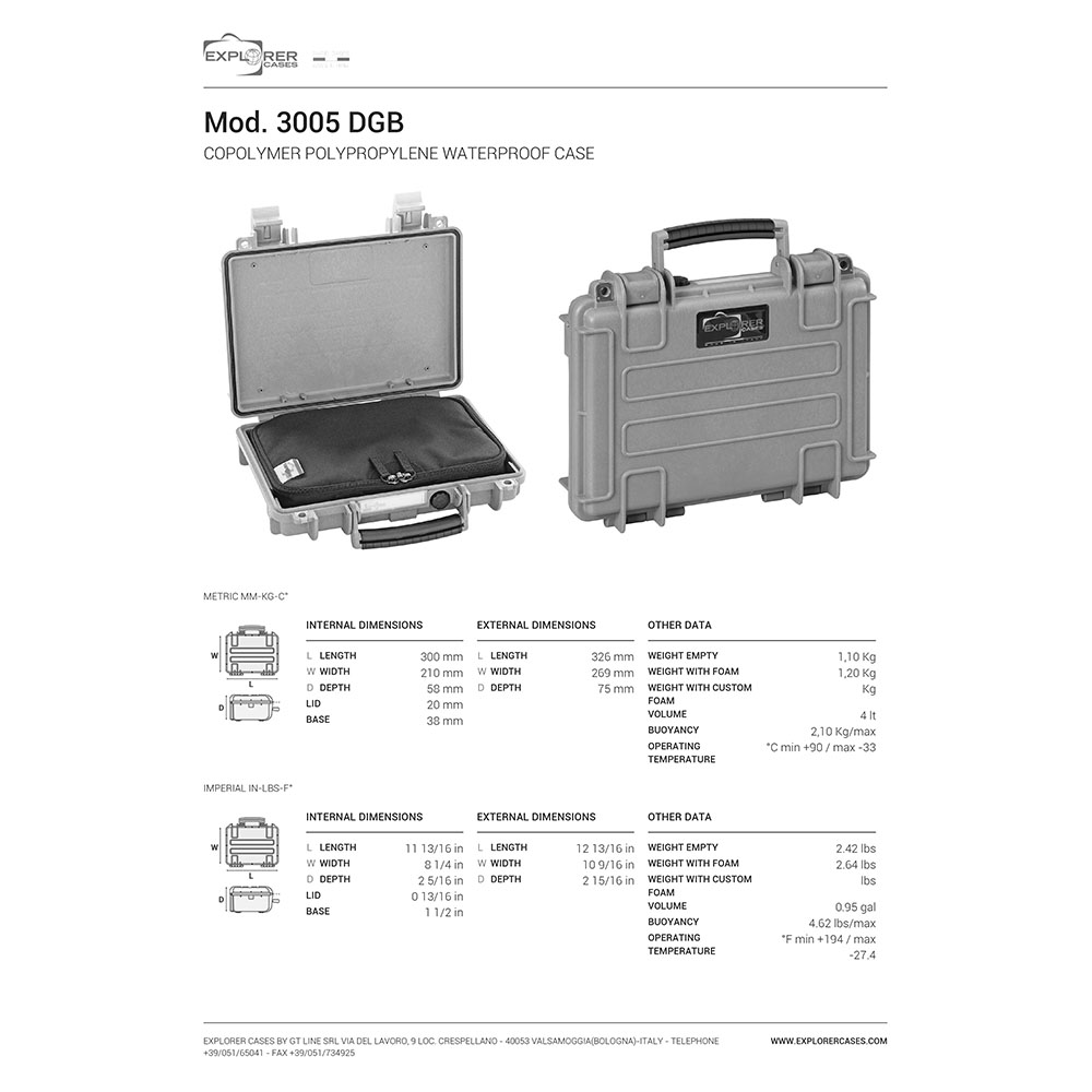 8024482183503 Der bestmögliche Schutz für Dein bestes Stück - Der ultimative Waffenkoffer mit einer Vielzahl von Funktionen in höchster Qualität, hergestellt von Explorer Cases in Italien. Spezifikationen: Länge: 326mm (300mm innen) Breite: 269mm (210mm innen) Tiefe: 75mm (58mm innen) Gewicht: 1,20kg (1,10kg Leergewicht ohne Einlage) Farbe: Schwarz Einlage: inkl. Waffentasche Nicht zu verwüsten Die Waffenkoffer von Explorer Cases verfügen über korrosionsbeständige Metallscharniere, welche den Deckel zudem in der gewählten Position fixieren. Sei Dir sicher, dieser Waffenkoffer wird sehr lange dein Begleiter sein. Dank der hochwertigen Verschlussriegel sind die Waffenkoffer immer perfekt gesichert. Die O-Ring Dichtung macht sie zudem in hohem Maße wasserdicht. Alle Waffenkoffer sind mit einem manuellen Druckausgleichungsventil ausgestattet. Daher kannst Du sicherstellen, dass genügend Luft aus dem Gehäuse austritt, damit Du keine Probleme haben wirst, den Koffer zu schließen. Genauso wie Du es möchtest Die Gehäuse sind mit internen Aussparungen für optionale interne Halterungen oder Montageringe versehen, sodass Du alles genau so aufbewahren kannst, wie es für deine Anforderungen am geeignetsten ist. Jeder einzelne Koffer kommt mit einem wasserfesten abnehmbaren PVC-Etikett, mit welchem du deine Ausrüstung beschriften kannst oder deine Daten hinterlegen kannst. Der Koffer kann entweder traditionell über den großen Frontgriff oder über optional erhältliche Schultergurte, welche sich ganz einfach an jedem Modell befestigen lassen, transportiert werden. Die 3005 Serie ist zudem für den Transport im Flugzeug optimiert.Lieferzeit ca. 3-6 Werktage.
