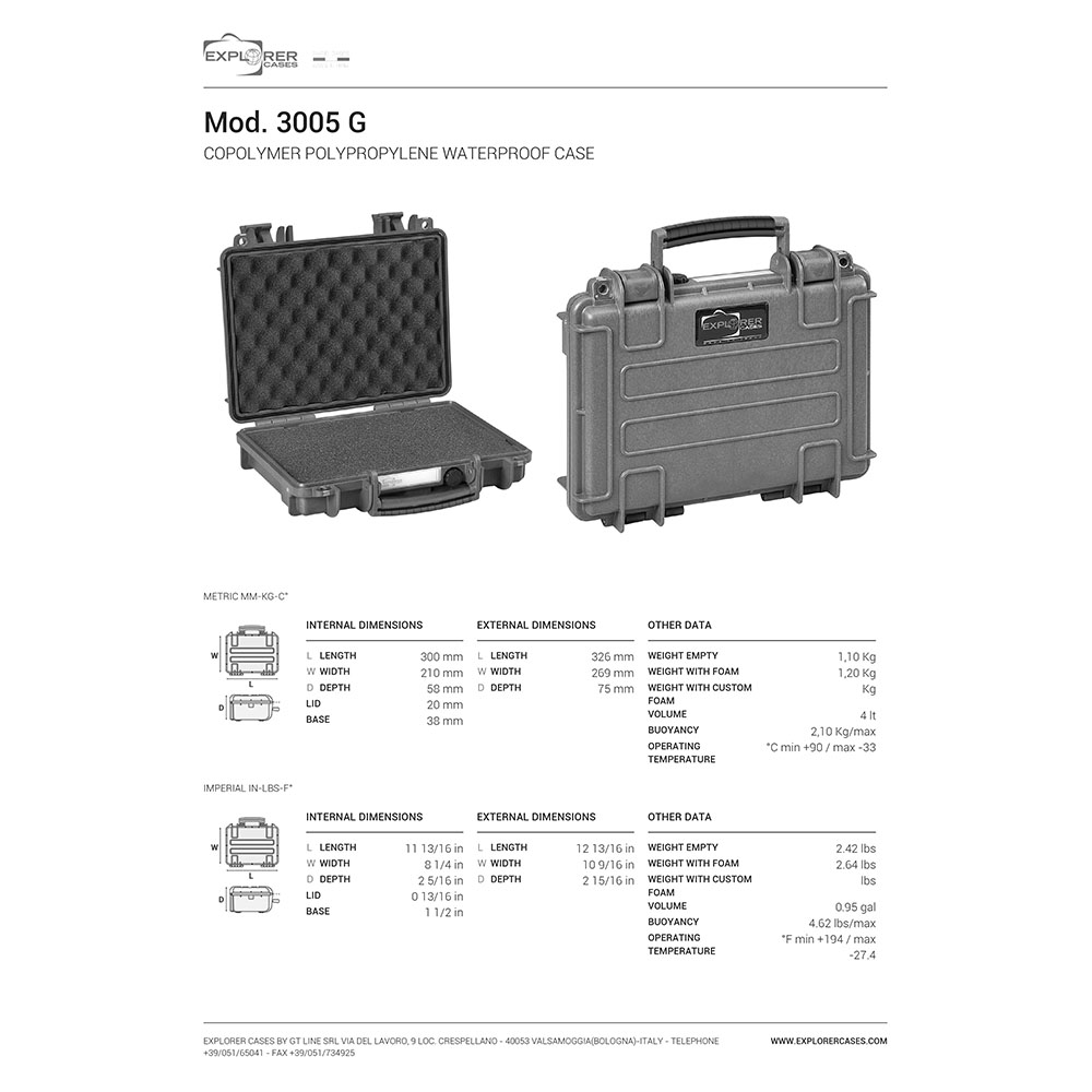 8024482181677 Der bestmögliche Schutz für Dein bestes Stück - Der ultimative Waffenkoffer mit einer Vielzahl von Funktionen in höchster Qualität, hergestellt von Explorer Cases in Italien. Spezifikationen: Länge: 326mm (300mm innen) Breite: 269mm (210mm innen) Tiefe: 75mm (58mm innen) Gewicht: 1,20kg (1,10kg Leergewicht ohne Einlage) Farbe: Schwarz Einlage: vorgeschnittener Schaumstofff Nicht zu verwüsten Die Waffenkoffer von Explorer Cases verfügen über korrosionsbeständige Metallscharniere, welche den Deckel zudem in der gewählten Position fixieren. Sei Dir sicher, dieser Waffenkoffer wird sehr lange dein Begleiter sein. Dank der hochwertigen Verschlussriegel sind die Waffenkoffer immer perfekt gesichert. Die O-Ring Dichtung macht sie zudem in hohem Maße wasserdicht. Alle Waffenkoffer sind mit einem manuellen Druckausgleichungsventil ausgestattet. Daher kannst Du sicherstellen, dass genügend Luft aus dem Gehäuse austritt, damit Du keine Probleme haben wirst, den Koffer zu schließen. Genauso wie Du es möchtest Die Gehäuse sind mit internen Aussparungen für optionale interne Halterungen oder Montageringe versehen, sodass Du alles genau so aufbewahren kannst, wie es für deine Anforderungen am geeignetsten ist. Jeder einzelne Koffer kommt mit einem wasserfesten abnehmbaren PVC-Etikett, mit welchem du deine Ausrüstung beschriften kannst oder deine Daten hinterlegen kannst. Der Koffer kann entweder traditionell über den großen Frontgriff oder über optional erhältliche Schultergurte, welche sich ganz einfach an jedem Modell befestigen lassen, transportiert werden. Die 3005 Serie ist zudem für den Transport im Flugzeug optimiert.Nachbestellt, Lieferzeit ca. 4-12 Wochen aus dem Lager Europa.