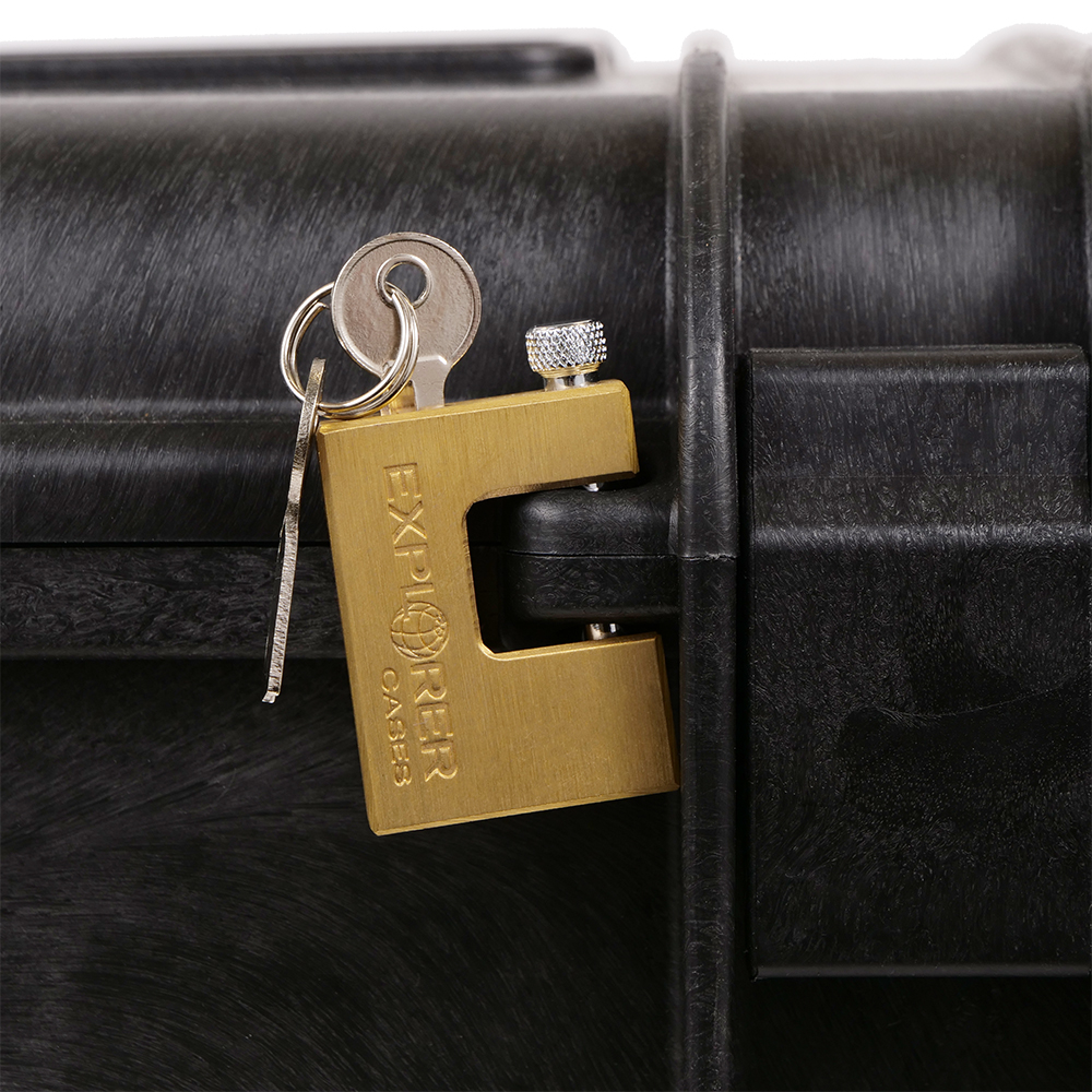 Das Schloss ist äußerst robust und passt formgenau an dein Explorer Case, sodass es kein Hinderniss während des Transports darstellt.