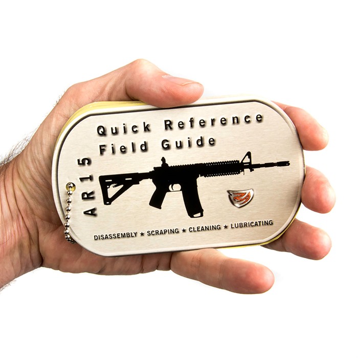 This compact, easy-to-follow field guide contains everything you need to know about your AR15. Illustrated step-by-step instructions show you how to break down, clean, oil, and reassemble the gun you love to shoot. Laminated pages are durable enough to have a spot on your cleaning workbench and small enough to fit in your range bag. Understanding the AR15 platform has never been this easy.Features: - Step-by-step and color coded instructions easily guide AR15 owners through field stripping, routine cleaning, scraping, and heavy, light and minimal lubrication - Detailed scraping instructions tell you where to scrape carbon and built-up fouling from 12 critical bolt carrier group surfaces - Oil and Solvent Resistant Pages help the guide last in the field, in your range bag, or on your workbench - Visual Instructions help new MSR owners get to know their gun while offering seasoned veterans an at-a-glance reference guide.