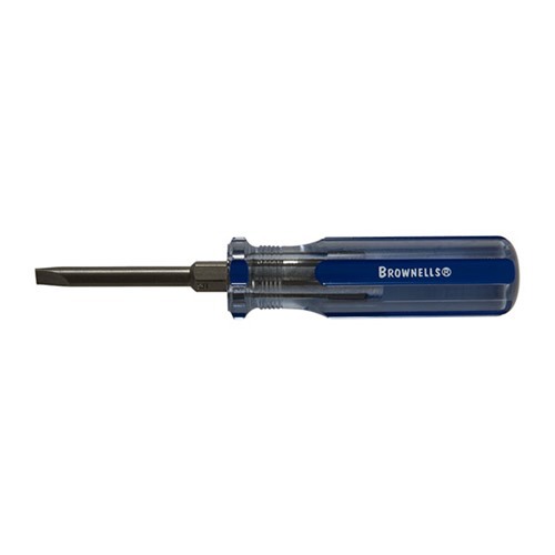 BROWNELL’S FIXED BLADE GUNSMITH'S SCREWDRIVERS The Brownells Fixed-Blade Gunsmith's Screwdrivers are meticulously designed for gunsmiths and firearm enthusiasts who demand precision and reliability in their tools. Each screwdriver features a custom, precision-ground, hollow-ground blade tip that ensures a perfect fit in gun screws, distributing torque evenly to prevent damage. The short blade length of 2½ inches provides maximum control and minimizes wobble during use. The long parallel shank maintains the same diameter as the blade width, allowing for repeated regrinding and access to recessed screws. Handles are custom-made to fit comfortably in the hand, offering a secure grip for both large, tight screws and delicate, small screws. Key Features: Precision-Ground Blade Tips: Custom, hollow-ground tips provide maximum strength and a perfect fit in screw slots, preventing damage. Short Blade Length: 2½-inch blades offer enhanced control and reduce wobble during use. Parallel Shank Design: Maintains blade width for easy regrinding and access to recessed screws. Comfortable Handles: Custom-designed handles fit well in the hand, providing a secure grip for various screw sizes. Specifications: Blade Length: 2½ inches Handle Length: 3¾ inches Handle Diameter: 1 inch Material: Hardened steel shank with custom handle Customer Insights: Our customers highly value the Brownells Fixed-Blade Gunsmith's Screwdrivers for their exceptional precision and durability. The custom, precision-ground blade tips are particularly appreciated for their perfect fit in gun screws, effectively preventing damage during adjustments. The short blade length enhances control, making delicate tasks more manageable. Additionally, the comfortable handle design provides a secure grip, accommodating both large and small screws with ease. Overall, these screwdrivers are considered indispensable tools for both professional gunsmiths and firearm enthusiasts. Incorporating the Brownells Fixed-Blade Gunsmith's Screwdrivers into your toolkit ensures precise and reliable performance for all your firearm maintenance and customization needs. Their specialized design and high-quality construction make them essential tools for achieving professional results.