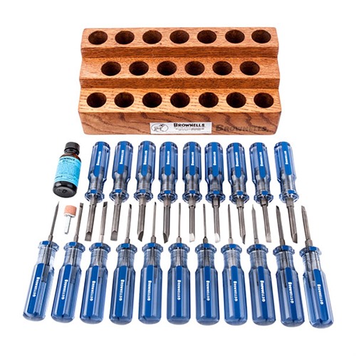 050806007680 Wir freuen uns riesig, dir unser Fixed-Blade, Gunsmith's Screwdriver Set anzubieten, das von Gunsmiths für Gunsmiths entwickelt wurde, die solide, feststehende Schraubendreher lieben, die perfekt auf ihre Waffenschrauben passen – und es einfach nicht anders haben wollen! DER PERFEKTE TIPP & KLINGE Wir haben mit der Spitze der Klinge begonnen, dem Teil, das perfekt auf die Waffenschraube passen muss, und dem wichtigsten Teil eines Gunsmiths-Schraubendrehers. Die Klingenenden sind dann maßgeschneidert, präzise geschliffen in einer klaren, radierten, hohlgeschliffenen Form, um maximale Stärke zu gewährleisten. Und der ideale parallele Abschnitt wird an der Spitze geschliffen, um den Schraubenschlitz in voller Breite und Tiefe richtig zu passen. (Das verhindert, dass du Schrauben beschädigst – eine Klingen-Spitze, die das Drehmoment gleichmäßig über die gesamte Breite und Tiefe des Schraubenschlitzes verteilt.) Wir haben die Klingen kurz gehalten (du bist nur 2½" vom Werkstück entfernt), um dir maximale Kontrolle zu geben und Wackeln und Neigen zu vermeiden. Dennoch sind sie lang genug, um dir einen guten Blick auf die Arbeit zu ermöglichen, die du machst. Die Toleranzen werden für die gesamte Klinge extrem eng gehalten, und die gesamte Klinge/Schaft-Konstruktion wird auf Rc 58-60 gehärtet, um maximale Stärke und Zähigkeit in einem Schraubendreher zu gewährleisten. DAS SHAFT-DESIGN Der lange parallele Schaft hat den gleichen Durchmesser wie die Breite der Klinge. Dies ermöglicht wiederholtes Nachschleifen und Umformen, während die ursprüngliche Klingenbreite erhalten bleibt. Darüber hinaus ermöglicht es dem Schraubendreher, in Löcher oder Vertiefungen einzudringen, die nur schraubenschlitzbreit sind. Der Sechskantbereich ermöglicht es dir, entweder einen Maulschlüssel oder einen der Midget-Ratschen für mehr Drehkraft bei den schwereren Klingen zu verwenden. Schließlich haben wir eine Größenfolge-Nummer - von 1 (kleinster) bis 20 (größter) - auf dem Sechskantbereich jedes einzelnen Schraubendrehers angebracht, damit du schnell die gewünschte Größe auswählen kannst. HANDGRIFF SPEZIELL FÜR DICH ENTWICKELT Die Griffe sind nach unseren Spezifikationen maßgefertigt, um gut in deine Hand zu passen. Sie sind nicht zu klobig, bieten jedoch einen hervorragenden Griff, wenn große, feste Schrauben gelöst werden müssen, und „Fingerspitzen“-Kontrolle beim Umgang mit kleinen, empfindlichen Schrauben. Wir verwenden den gleichen Griff für alle 20 Schraubendreher, um das gleiche Handgefühl und die gleiche Passform im gesamten Set zu gewährleisten. AUSGEZEICHNETE PRÄSENTATION ARBEITSBLÖCKE In Übereinstimmung mit der hervorragenden Qualität der Schraubendreher haben wir zwei prächtige massive Eichen-Bench-Blocks entworfen, um deine Fixed-Blade Gunsmith's Screwdrivers zu halten. Sie sind echte Schönheiten. Jeder hat 3 Ebenen, um sie kompakt zu machen; du kannst sowohl die Breite/Dicke der Klinge als auch die identifizierende Nummer, die auf einer Fläche des freiliegenden Sechskants gestempelt ist, sehen, und die 20 Löcher (Master Block) oder 10 Löcher (Add-On Block) sind weit genug voneinander entfernt für guten Platz zwischen den Fingern. Jeder Bench Block ist mit einem robusten, nicht glänzenden Lack versehen und hat rutschfeste Füße, um ihn an seinem Platz auf deinem Tisch zu halten. Schließlich enthält der Master Set Block eine personalisierte Namensplatte, die du auf deinem Bench Block anbringen kannst. Wir haben jedem Block das Bestellformular beigefügt, damit du auswählen kannst, welchen Stil der Platte du möchtest und welche Beschriftung du hättest. Das ist alles bezahlt – und macht den Block perfekt für Auszeichnungen oder Geschenke und zeigt der Welt, dass die Schraubendreher dir gehören. Der Add-On Block für das Super Master Set enthält keine Namensplatte. VERFÜGBARE SETS Wir haben die Schraubendreher auf zwei Arten verpackt: Das Master Set™ enthält alle 20 Schraubendreher sowie den ordnungsgemäß radierten Bit-Shaping-Stone, den Bench Block und eine Flasche Brownells Best Penetrating Oil™. Um das Super Master Set™ zu erstellen, haben wir das Master Set genommen und 6 Innensechskantschraubendreher mit feststehender Klinge, 3 Phillips "Anti-Cam"-Schraubendreher und den Add-On Block hinzugefügt. Wie bei all unseren Werkzeugen und Zubehörteilen sind sie garantiert, dich, den anspruchsvollsten Handwerker der Welt – den arbeitenden Gunsmith – zufrieden zu stellen.Nachbestellt, Lieferzeit ca. 4-12 Wochen aus dem Lager USA.