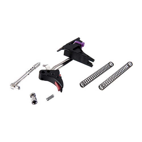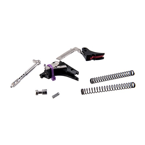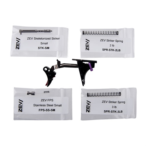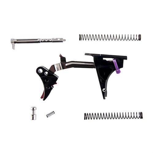 Convenient kits with the performance benefits of a custom trigger job to give your Glock® an ultra-smooth pull, clean letoff, and short reset without impairing the reliability of the factory safeties. Fully adjustable for pre-travel and over-travel via two easy-to-access hex-head screws (wrench included), so you can tune trigger feel to your exact requirements for maximum control. Trigger shoe and trigger safety are precision machined from 6061 T6 aluminum billet for precise engagement, smooth movement, and superb responsiveness. Engagement surfaces on the stainless steel trigger bar are mirror polished for outstanding sensitivity and consistency. Basic Fulcrum trigger includes preassembled trigger shoe, safety lever, and trigger bar. Gen 4 Kits available for Gen 4 models 17/19 (9mm) and 22/23 (.40 S&W) pistols. ZEV Technologies recommends this for competition use ONLY.