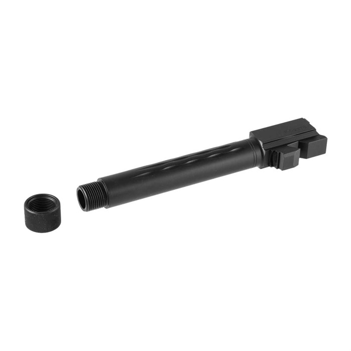 The "Flame" Match Barrels for Glock® 17 from Faxon Firearms have innovative, variable-depth fluted "flames" that help dissipate heat to keep the barrel cool and give extra rigidity. The result is barrels with a strong resistance to accuracy drift due to heat warpage - a real plus in a hard-running action competition pistol. Besides, it also looks cool! Faxon’s Flame Match Barrels for Glock® 17 are painstakingly machined from triple stress-relieved 416R stainless steel, before application of a hard, black Nitride finish for superb resistance to surface wear. Muzzles have a meticulously cut 11° target crown to ensure the bullet departs on a true trajectory. Compatible with Gen 1-4 G17 pistols 9mm SAAMI-spec chamber AND 1-10" twist conventional rifling handles any type of projectile - jacketed, heavy subsonics, even cast-lead practice bullets Available with a plain, unthreaded muzzle OR with ½"-28 tpi threads for compensator or sound suppressor installation Hard Nitride finish is non-reflective and helps prevent surface wear As if that’s not enough, the Faxon Flame Match Barrel for Glock® 17 drops into a factory-spec slide with no gunsmith fitting needed. Better-than-factory tolerances ensure a consistent, secure lockup, too, further enhancing your prospects for tight groups.