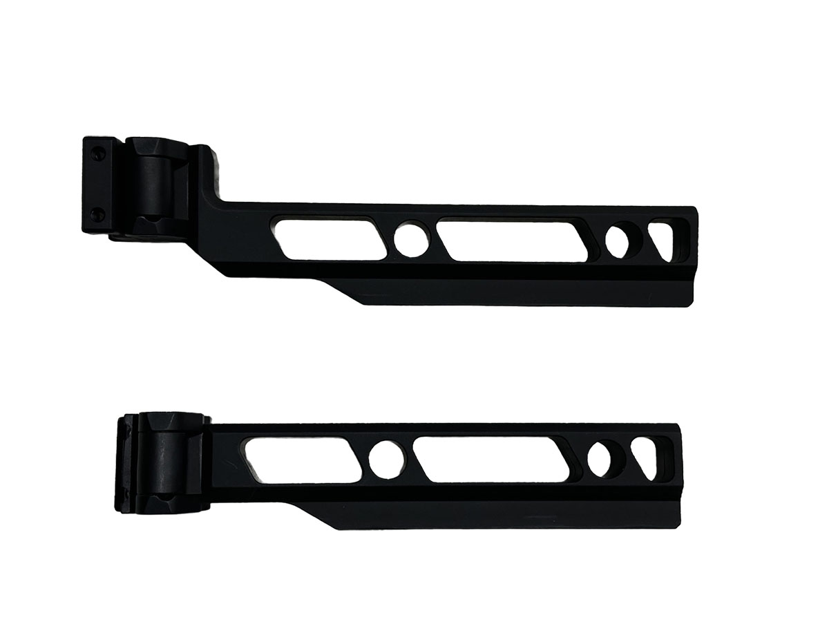 The Chisel Machining Folding Buffer‑Tube 1913 Stock is a precision‑engineered, CNC‑machined billet aluminum stock designed for any firearm equipped with a 1913 Picatinny rear interface. Built for strength, adjustability, and compactness, it provides a rugged yet highly adaptable solution for tactical, sporting, and compact firearm setups. Key Features 6061 Billet Aluminum Construction Machined from a solid block of aluminum, offering exceptional durability, rigidity, and long‑term reliability. Premium Folding Hinge Mechanism Features a robust locking knuckle that secures firmly in the open position while allowing smooth folding for transport or storage. Adjustable Length of Pull Offers eight LOP positions, enabling shooters to fine‑tune the stock length for optimal comfort and control. Two Cheek‑Height Options Available in Straight (standard height) or Drop (¾-inch drop) versions to match different sight heights and firearm platforms. Two Stock Configurations Straight Version: Ideal for AR‑style firearms, AKs, and platforms requiring higher cheek weld. Drop Version: Designed for shotguns or setups with lower sight alignment. Hard‑Anodized Black Finish Fully anodized in black for corrosion resistance and a sleek tactical appearance.