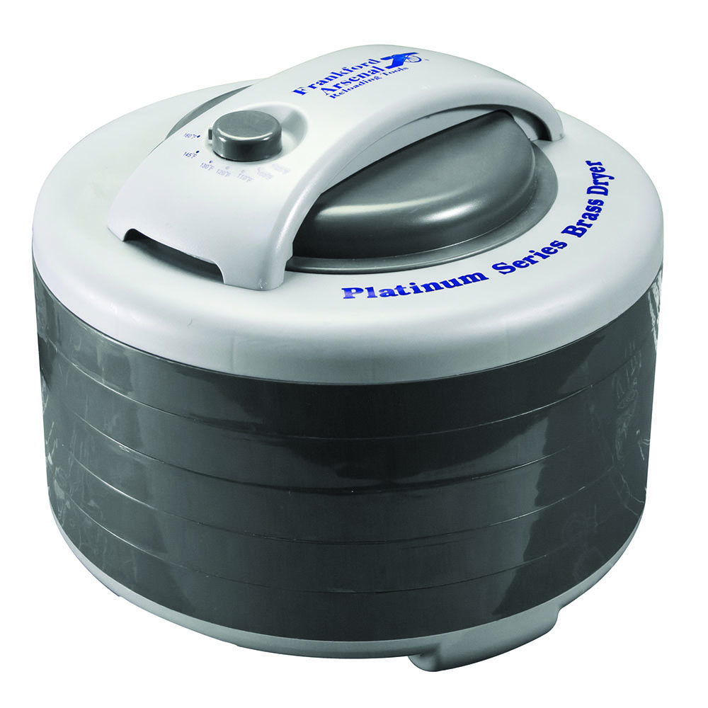 661120001355 Der Frankford Arsenal® Platinum Series Brass Dryer ist ein schnelles, praktisches und effizientes System zum Trocknen deiner Hülsen. Dieser Trockner ist das perfekte Werkzeug, um deine Gewehr- und Pistolenhülsen nach nassen Reinigungsprozessen wie dem Rotationspolieren oder der Ultraschallreinigung zu trocknen. Die separaten und abnehmbaren Tabletts ermöglichen es dir, verschiedene Kaliber gleichzeitig zu trocknen, ohne sie zu vermischen. Der Brass Dryer ist ein Hochleistungsgerät, das bis zu 1000 Stück .223 Gewehrhülsen oder bis zu 2000 Stück 9mm Pistolenhülsen trocknen kann. Dieser Trockner kann deine Hülsen innen und außen in weniger als einer Stunde trocknen. Die Zwangsbelüftung mit Konvektionsheizung verringert die Wahrscheinlichkeit von Wasserflecken auf deinen frisch gereinigten Hülsen. Das leistungsstarke 500 Watt Heizungssystem erwärmt die Luft schnell und gleichmäßig, was die Trocknungszeit verkürzt. Das Design mit Zwangsluftstrom sorgt dafür, dass Wärme und Luft gleichmäßig über die separaten Tabletts verteilt werden, sodass die Hülsen innen und außen getrocknet werden. Der oben montierte Ventilator stellt sicher, dass sich keine Feuchtigkeit aus dem Reinigungsprozess in der Elektronik ansammeln kann. Die Trocknungsbehälter haben feine, gerippte Böden und Halterippen, um deine Hülsen auf verschiedenen Ebenen getrennt zu halten. In Kombination mit einem Platinum Series Rotary Tumbler wird schmutzige, korrodierte Range-Hülsen so glänzend wie neu.Lieferzeit ca. 3-6 Werktage.