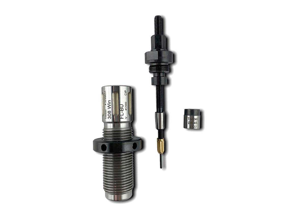 Full Length Die with Interchangeable Neck Sizing Ring The FL die is used to size the cartridge case on full length. In this version, the case neck is not sized directly inside the die body but by an interchangeable neck sizing ring (bushing). By changing bushing, the amount of neck sizing can be varied. It consists of the solid die body, the interchangeable neck sizing ring (bushing), and the spindle with expander and decapping pin. The die body is hardened, and the interior profile is mirror-polished. The precision-ground seat for the neck sizing ring ensures an accurate fit. The HK ring is made of tool steel, hardened and finely ground. The expander is also made of tool steel, hardened and finely ground. The complete spindle can be removed upwards, so no readjustment is necessary when reinstalling. Full-length sizing of the cartridge case from base to shoulder takes place when the case is pushed into the die. The case neck is sized on the outside by the installed bushing. Neck sizing from the inside takes place as the case is withdrawn from the die. This restores the case’s loadability and achieves a consistent and secure bullet seating. The correct position of the die in the press is set with the lock nut. All relevant components, including bushings in different sizes, have an article number for easy reordering if necessary. You will find further instructions and assistance in selecting accessories and spare parts in the manual. Subdomain: Bedienungsanleitung.triebel-guntools.de