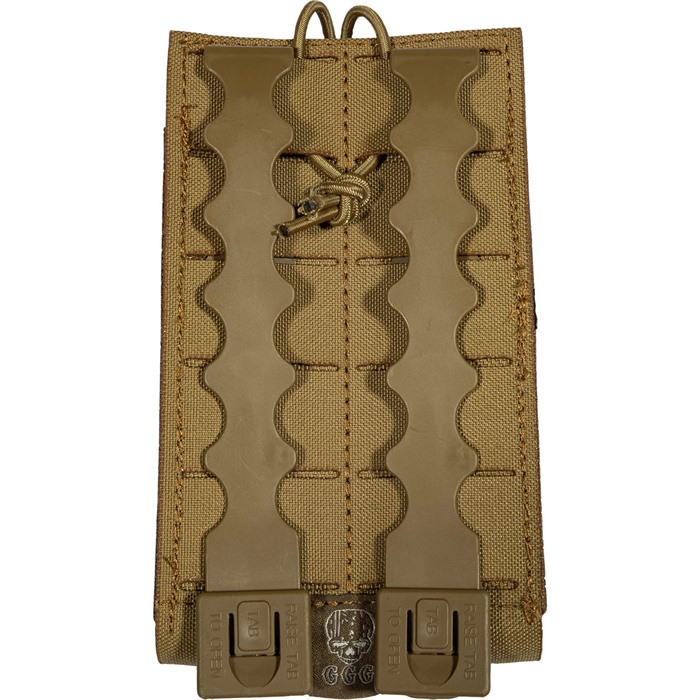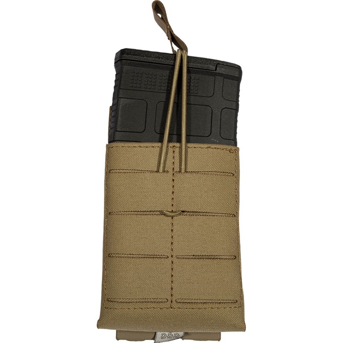 Die Single 7.62 Mag Pouch bietet ein offenes Design mit einem verstellbaren Bungee-Riemen, der eine geräuschlose Entnahme deines Magazins ermöglicht. Zudem verfügt sie über modulare Webbing-Anbringung auf der Vorder- und Rückseite, um andere Taschen zu stapeln.