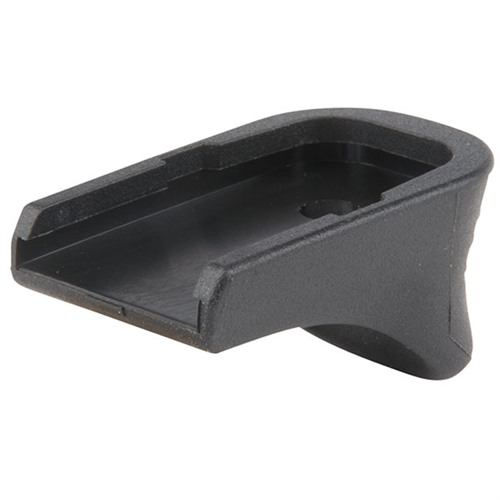 Die verlängerte „Regal“-Fläche für den kleinen Finger wird anstelle des werkseitigen Magazinbodens befestigt. Dadurch wird das Schießen mit diesen kleinen „Handvoll“-Pistolen viel komfortabler.