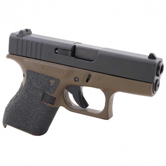 The Glock 42 is a great pocket pistol for personal defense, chambered in the .380 ACP cartridge. However, small pistols like the 42 can be harder to handle, and the Talon Glock 42 Grip Tape ensures that owners of these personal-defense guns can have the solid grip they need. The Talon Glock 42 Grip Tape is designed to adhere securely to any Glock pistol frame, but the tape's adhesive is not permanent and can be removed easily without damaging the gun's frame. Each grip tape option is a full wraparound design and covers the side panels, thumb rest, backstrap and beneath the trigger guard. Available in rubber and granulate finishes Color: black Features all control cutouts The Talon Glock 42 Grip Tape also features cutouts that preserve the "GLOCK" graphic located on the gun's grip frame.