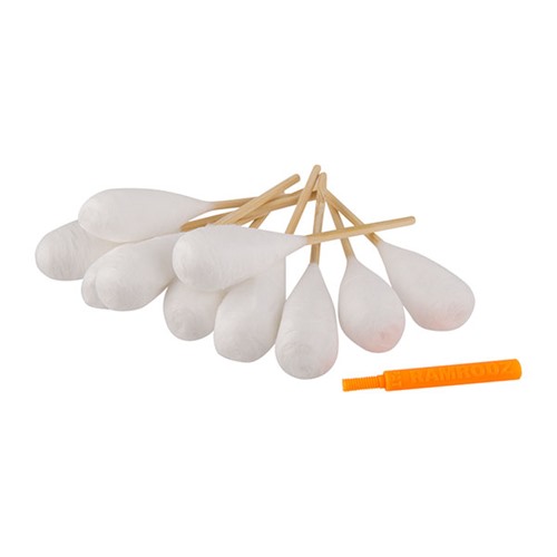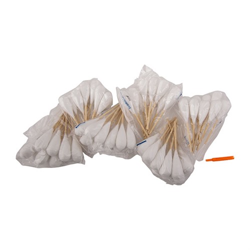 Die Einwegreiniger verfügen über fest gewickelte, fusselfreie Baumwollköpfe, die alle Arten von Verunreinigungen und Pulverrückständen entfernen, ohne Fasern zu hinterlassen. Die Köpfe sind so gestaltet, dass sie sich in die Züge der Läufe ausdehnen und sich den Laufwänden anpassen, um eine maximale Reinigung zu gewährleisten.