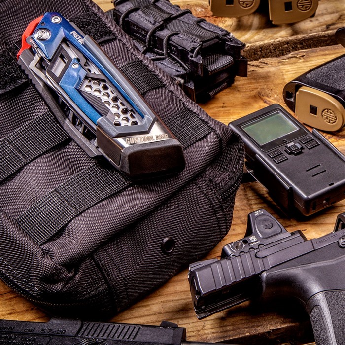 Das Gun Tool AMP von Real Avid ist die nächste Generation von plattform-spezifischen Multitools. Es wurde mit einer transformerähnlichen, selbstspeichernden Funktion neu gestaltet, bei der der doppelte Schraubendreher und das Bit-Set als Holster für den Werkzeugrahmen dienen und die entscheidenden Werkzeuge für Waffen umschließen.