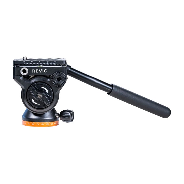 Fluid heads are uniquely suited for heavy use with optics, whether you're spotting impacts at the range or spending days on end behind a spotting scope or binoculars, glassing up bedded bucks, the smoothness and fluidity of a fluid head give you an added edge when finding and observing game or targets is the goal. Features: Ergonomic fluid tension Locking 360° pan Ambidextrous, adjustable handle can be configured in nearly any orientation 1/2"x20 accessory mount 3/8"x16 thread mount fits most standard tripods (Including the Revic Stabilizer series tripods) Included ARCA-Swiss plate Specs: Weight: 1.1lb Height: 3.5" Base Diameter: 2.0" Tilt Angle: +90°/-75 Pan travel: 360° Max Load: 8.8lb Mounting Plate: ARCA-Swiss Material: CNC machined 6061-T6 hard anodized aluminum