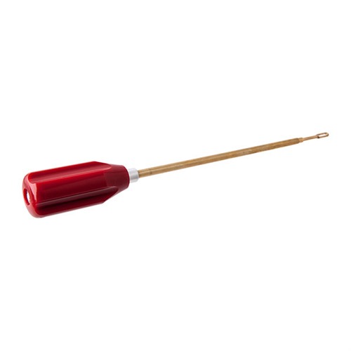 The Dewey Handgun Cleaning Rod features a 6.5" working length, 1/4" brass pistol cleaning rod with ball bearing handle assembly, 8/32 female threads, and includes a universal brass patch loop. Perfect for .357/.38/9mm, .40, and .45 caliber handguns. Not for .17 or .22 caliber.