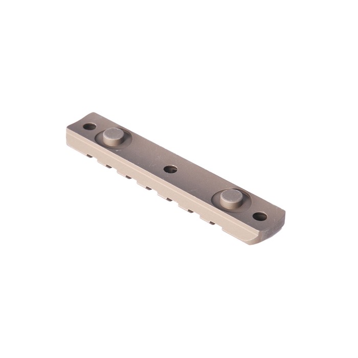 2-Hole Accessory Rail for Geissele HK SMR Designed specifically for use with Geissele HK Super Modular Rails (SMR). This 1913 Picatinny spec rail section allows the attachment of various 1913 Picatinny spec rail-mounted accessories such as lights, vertical grips, etc. Machined from milspec-anodized aluminum. 3 Slots. 3-Hole Accessory Rail for Geissele HK SMR Designed specifically for use with Geissele HK Super Modular Rails (SMR). This 1913 Picatinny spec rail section allows the attachment of various 1913 Picatinny spec rail-mounted accessories such as lights, vertical grips, etc. Machined from milspec-anodized aluminum. 7 Slots.