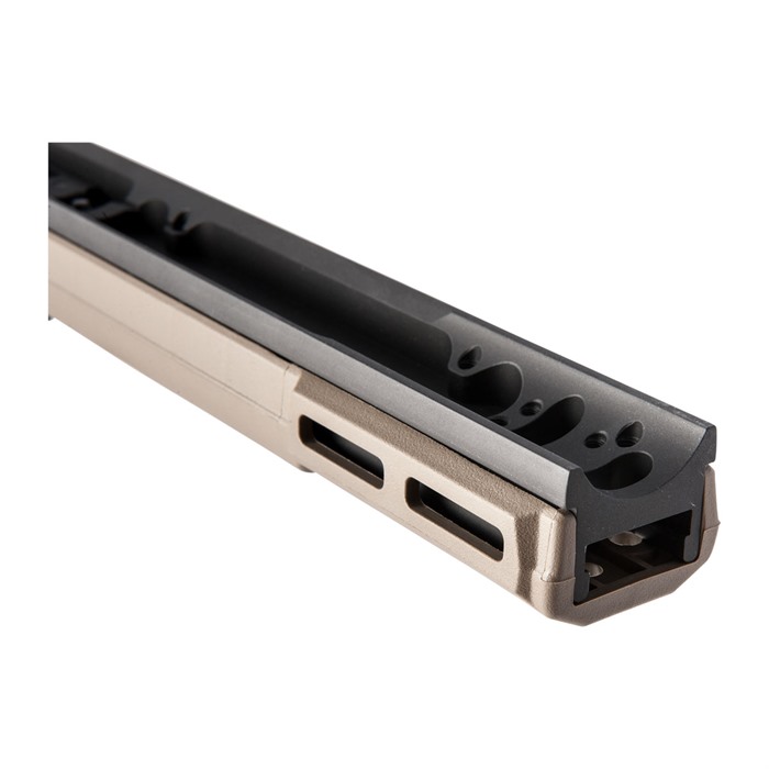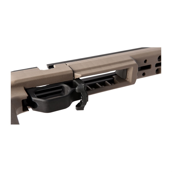 Das Kinetic Research Group Howa 1500 Bravo Chassis verfügt über ein Rückgrat aus bearbeitetem Aluminium, das sich über die gesamte Länge des Schaftes erstreckt. Dies verleiht ihm die Steifigkeit, die normalerweise bei maßgeschneiderten Bettungsarbeiten zu finden ist. Der Rest des Schafts besteht aus verstärktem Polymer für zusätzliche Haltbarkeit.