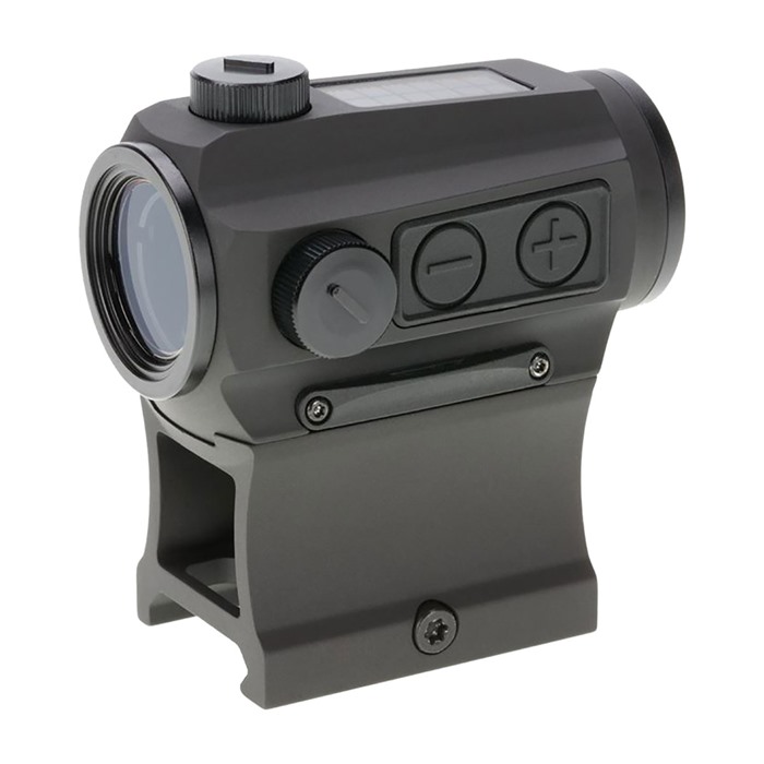 Don't ever be stuck at the range or in the field with a red-dot optic that's out of juice. The Holosun HS403C Solar Micro Red Dot Sight is purpose-built to ensure that hunters and shooters have an optic that can run off multiple power systems. The Holosun HS403C Solar Micro Red Dot Sight is built with a combination of built-in solar panels combined with an ultra-efficient LED system that uses a bare minimum of power to provide an aiming point measuring 2 MOA in diameter. In sufficient sunlight, the optic can run without depending on a battery backup. Adjustment value: 1/2 MOA Features 12 brightness settings 50,000-hour battery life Weight: 4.3 ounces Fits Aimpoint Micro style mounts/footprints. Each Holosun HS403C Solar Micro Red Dot Sight ships with a low-mount riser and a 1/3 co-witness mount that's purpose-built for modern sporting rifles.