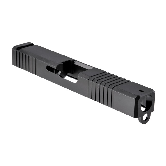 Die vorderen und hinteren Riegel sind auf die gleiche Tiefe wie die Riegel der Glock®-Werkschlitten geschnitten, um die strukturelle Steifigkeit zu erhalten. Die oberen Kanten und der vordere Bereich um den Lauf sind abgeschrägt, um das Risiko des Hängens an der Kleidung zu verringern und das Holstern der Pistole zu erleichtern.