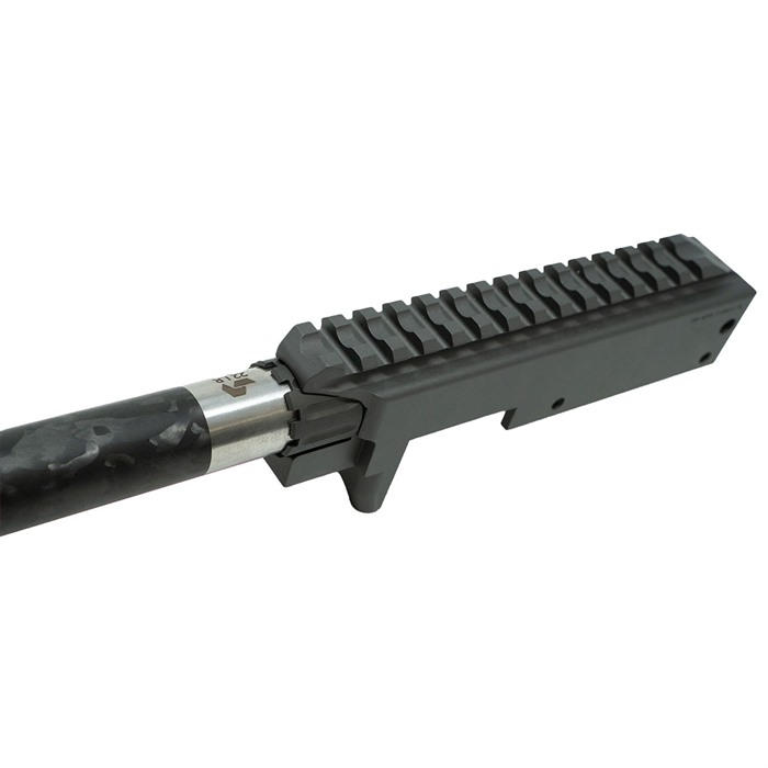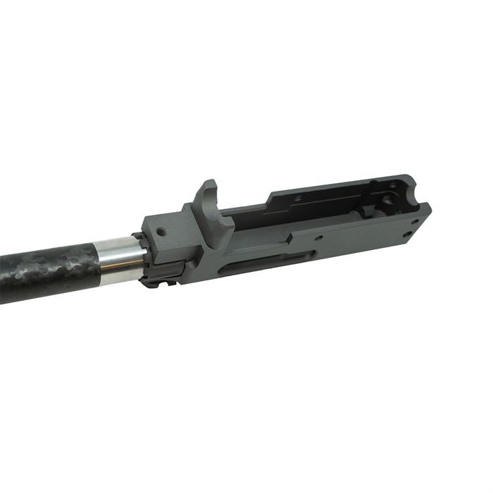 - Hochwertige Materialien: Der 16,1” Lauf hat eine Kohlefaserumwicklung über einem 416 Edelstahl-Innenlauf und ist mit ½-28 Gewinde versehen.