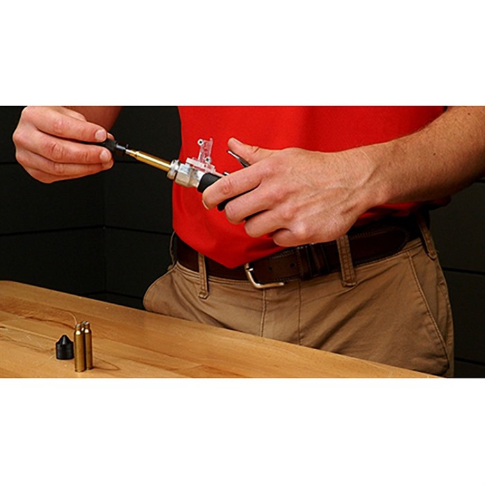 Verwende ihn in Verbindung mit deinem case length gauge, geriffeltem Shell Holder, Cutter mit Lock Stud und Entgratwerkzeug.