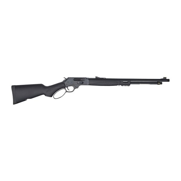 The Henry X-Model 30-30 is a Blued gun with a synthetic stock to handle any thing that is thrown at it, it has a 21.37" threaded barrel and fiber optic sights.