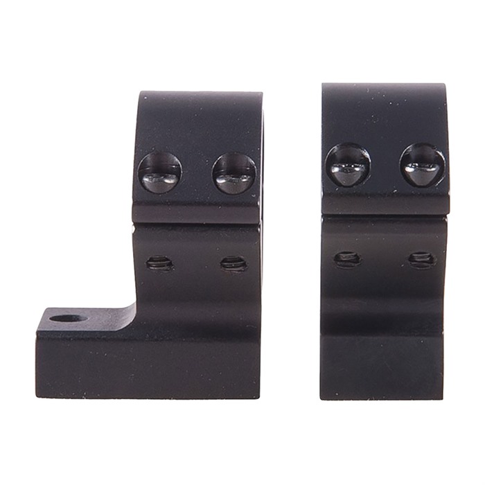 SPECS: 7000 series aluminum, black, anodized, matte finish. Accepts 1" dia. scopes, unless otherwise listed in fits column for 30mm dia. scopes. Height from bottom of ring to top of receiver: Low - .400" (10.1mm), Med - .500" (12.7mm). High - .640" (16.3mm), X‑High - .740" (18.8mm). Approx. weight 2.1 oz. (59 g). Some heights vary, see chart below. Rem. 700 also fits 721/722/725 and 40X models. Rem. Model Seven fits receivers with four screw holes. Savage AccuTrigger fits round top centerfire receivers with AccuTrigger. Win. 70 fits .860" rear hole spacing only.