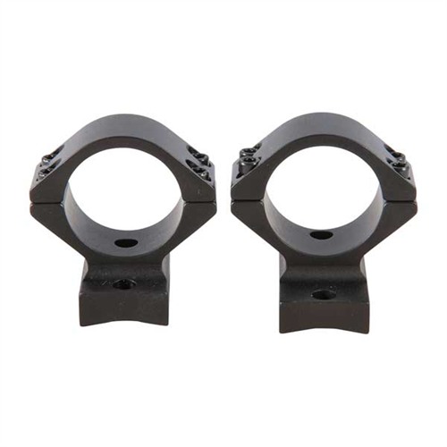 SPECS: 7000 series aluminum, black, anodized, matte finish. Accepts 1" dia. scopes, unless otherwise listed in fits column for 30mm dia. scopes. Height from bottom of ring to top of receiver: Low - .400" (10.1mm), Med - .500" (12.7mm). High - .640" (16.3mm), X‑High - .740" (18.8mm). Approx. weight 2.1 oz. (59 g). Some heights vary, see chart below. Rem. 700 also fits 721/722/725 and 40X models. Rem. Model Seven fits receivers with four screw holes. Savage AccuTrigger fits round top centerfire receivers with AccuTrigger. Win. 70 fits .860" rear hole spacing only.