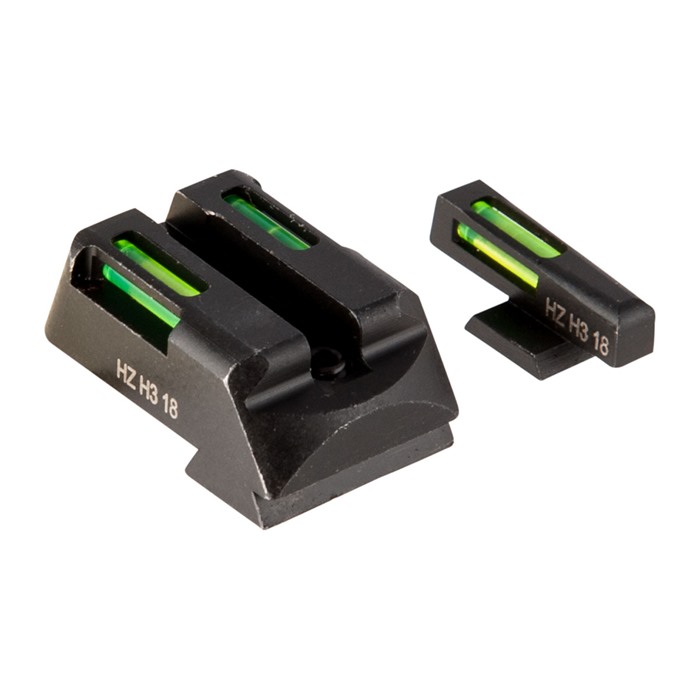 LiteWave H3™ Green + Orange Front Ring Sights from HIVIZ deliver a "triple threat" improvement on traditional night sight technology that ensures you can easily acquire your sights 24 hours a day in ANY light conditions. LitePipe fiber optic rods gather ambient light to produce a bright green, three-dot sight picture that's as easy to acquire in the sunlight of high noon as it is in the long shadows just before sunset. At night, the LiteWave H3's self-illuminating green Tritium inserts - filled with extra-bright "H3" Tritium gas - take over to maintain full visibility of those three dots. As a further enhancement, this version of LiteWave H3™ sights have a bright orange ring surrounding the front dot to help you find the front sight and get the three dots aligned fast - STP, in fact. (That's Sooner Than Possible… OK, maybe we exaggerate just a bit.) Front & rear dots are GREEN; front dot surrounded by ORANGE circle Traditional, intuitive, horizontal 3-dot pattern Exceptional visibility in ANY light conditions Steel sight bodies with durable satin black finish 1911 set fits all Kimber pistols with fixed sights; does not fit Micro Glock models available for standard, large, and G42/43 frame pistols & fit all "Gens" Smith & Wesson M&P fits full-size & compact pistols in all calibers; does not fit CORE, M&P 22 or M&P long slide Springfield XD fits XD, XDS, XDE & XD-M; does not fit XD w/5.25" bbl Sold as front/rear sight sets, HIVIZ LiteWave H3™ Green + Orange Front Ring sights are engineered for a drop-in fit to your pistol's factory slide dovetails or screw holes. Sight bodies are made entirely of steel to ensure excellent protection for the Tritium and fiber optic inserts. Sights are sized to allow proper clearance in standard holsters for your pistol. Put a set of HIVIZ LiteWave H3™ Green + Orange Front Ring sights on your pistol - and enjoy all the benefits of the highly intuitive, easy to acquire sights that get you on target FAST!