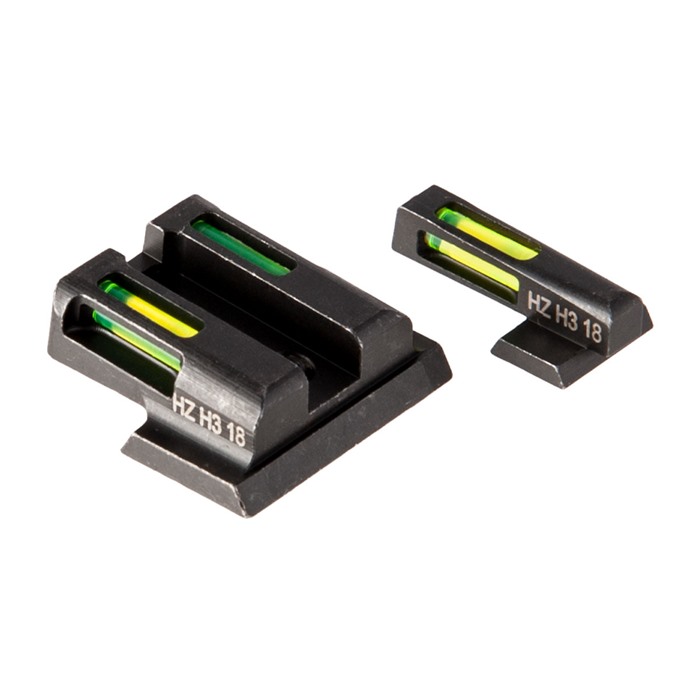 LiteWave H3™ Green + Orange Front Ring Sights from HIVIZ deliver a "triple threat" improvement on traditional night sight technology that ensures you can easily acquire your sights 24 hours a day in ANY light conditions. LitePipe fiber optic rods gather ambient light to produce a bright green, three-dot sight picture that's as easy to acquire in the sunlight of high noon as it is in the long shadows just before sunset. At night, the LiteWave H3's self-illuminating green Tritium inserts - filled with extra-bright "H3" Tritium gas - take over to maintain full visibility of those three dots. As a further enhancement, this version of LiteWave H3™ sights have a bright orange ring surrounding the front dot to help you find the front sight and get the three dots aligned fast - STP, in fact. (That's Sooner Than Possible… OK, maybe we exaggerate just a bit.) Front & rear dots are GREEN; front dot surrounded by ORANGE circle Traditional, intuitive, horizontal 3-dot pattern Exceptional visibility in ANY light conditions Steel sight bodies with durable satin black finish 1911 set fits all Kimber pistols with fixed sights; does not fit Micro Glock models available for standard, large, and G42/43 frame pistols & fit all "Gens" Smith & Wesson M&P fits full-size & compact pistols in all calibers; does not fit CORE, M&P 22 or M&P long slide Springfield XD fits XD, XDS, XDE & XD-M; does not fit XD w/5.25" bbl Sold as front/rear sight sets, HIVIZ LiteWave H3™ Green + Orange Front Ring sights are engineered for a drop-in fit to your pistol's factory slide dovetails or screw holes. Sight bodies are made entirely of steel to ensure excellent protection for the Tritium and fiber optic inserts. Sights are sized to allow proper clearance in standard holsters for your pistol. Put a set of HIVIZ LiteWave H3™ Green + Orange Front Ring sights on your pistol - and enjoy all the benefits of the highly intuitive, easy to acquire sights that get you on target FAST!