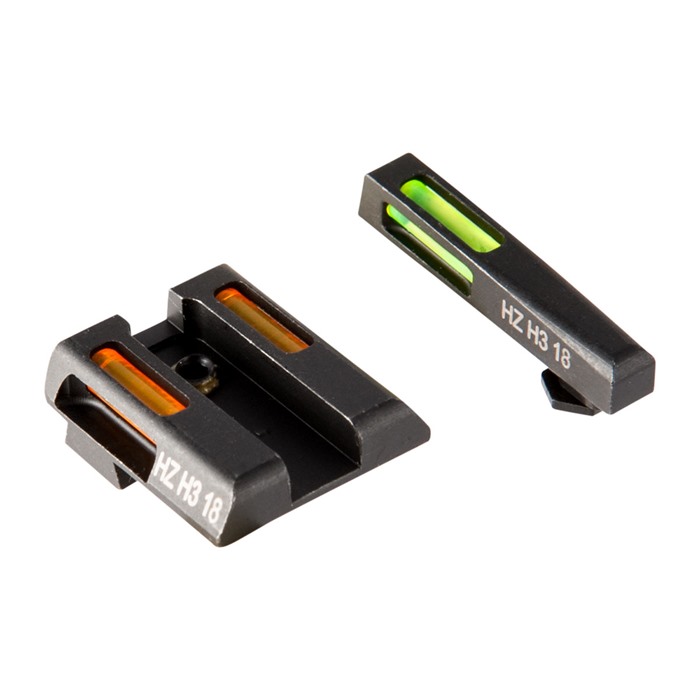 LiteWave H3™ Green / Orange Front Ring Sights from HIVIZ deliver a three-pronged improvement on standard night sight technology to ensure you'll can see your sights in any light conditions at ANY time of the day or night. At night, self-illuminating Tritium inserts - filled with extra-bright "H3" Tritium gas - maintain full visibility of the classic three-horizontal-dot sight picture. During the day, HIVIZ's LitePipe fiber optic rods gather and concentrate ambient light to produce bright, glowing dots that are as easy to see in the sunlight of high noon as at dusk. These LiteWave H3™ sights comes with two sets of interchangeable LitePipe rods for the rear sight: install the green rods for a monochromatic 3-dot sight picture OR use the Orange for easy differentiation of the rear dots from the green front dot. One final visibility enhancement: these LiteWave H3™ sights have a bright orange ring surrounding the front dot to help you find the front sight and get the three dots aligned even faster. Exceptional visibility in ANY light conditions Traditional, horizontal 3-dot pattern GREEN front fiber optic dot with ORANGE surround User swappable GREEN & ORANGE rods for rear sight Steel sight body with durable satin black finish Factory height allows use of standard holsters Glock models available for standard, large, and G42/43 frame pistols & fit all "Gens" Smith & Wesson M&P fits full-size & compact pistols in all calibers; does not fit CORE, M&P 22 or M&P long slide Springfield XD fits XD, XDS, XDE & XD-M; does not fit XD w/5.25" bbl Sold as front/rear sets, HIVIZ LiteWave H3™ Green / Orange Front Ring sights are engineered for a drop-in fit to your pistol's factory slide dovetails or screw holes. Sight bodies are made entirely of steel to ensure excellent protection of the Tritium and fiber optic inserts. Put a set of HIVIZ LiteWave H3™ sights on your pistol, and enjoy all the benefits of highly intuitive, easy to acquire sights that get you on target ASAP!
