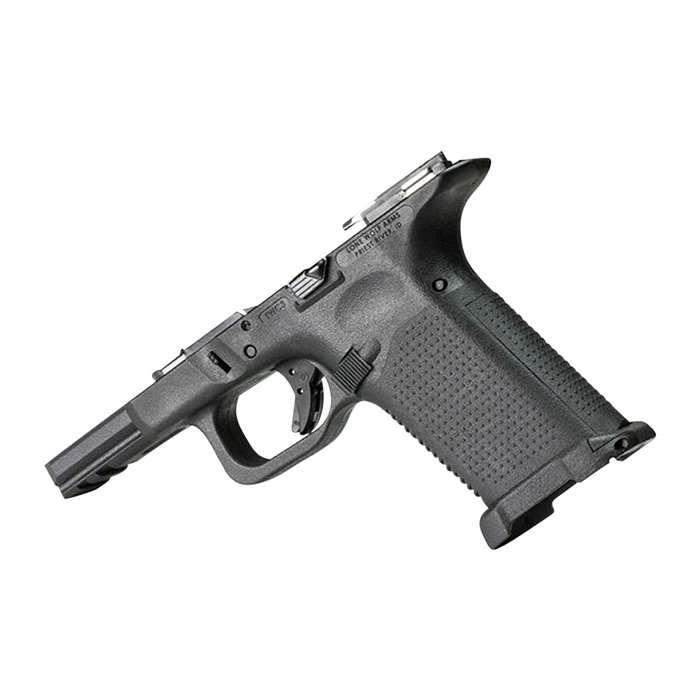 When Lone Wolf first launched the original Timberwolf frame, one of the first questions was “when will it be available in 9mm, .40 S&W, and .357SIG?” That time is now, because they’ve revamped and upgraded the design to bring you the Timberwolf Compact. The first thing you’ll notice is that the TWC fits in your hand like a much smaller pistol. The TWC-3 and TWC-1 accept Gen3 and Gen4 G19, 23, 32, and 38 slides. When using a Gen4 slide you simply remove the installed adapter in the dust cover area of the frame. Using Gen3 slides you leave the adapter in place to fill the gap between the slide and dust cover. The TWC includes the dust cover adapter, removable magazine well, and interchangeable backstraps. No matter what your shooting goal is, the TWC will fit your needs. Whether you want a gun for backwoods carry, a longslide for competition, a slim and easy to carry 9mm for personal protection, or just want to build the coolest gun at the range, the Timberwolf Compact can make your dreams come true. Assembled frames come with the following parts installed. If purchasing a bare frame with parts kit the same parts are used but not installed, if you are using your own parts please note most parts are GEN3 parts except the magazine catch, locking block (PN 4361), and trigger housing which requires a GEN4 style part. Part Name TWC LWD Extended Slide Stop 3 Pin LWD-7496 LWD Ext Slide Lock Lever Black LWD-ESLL LWD Connector 3.5 lb LWD-342 LWD Trigger Spring 6 lb LWD-350-6 LWD Trigger Pin LWD-420 LWD Locking Block Pin LWD-4368 LWD Slide Lock Spring LWD-2317 LWD Locking Block LWD-4361-1 LWD Trigger Housing Pin (Black) LWD-427B LWD Universal Trigger Housing LWD-UTH-9 LWD Mag Catch Spring LWD-280 LWD Magazine Catch Reversible (Gen 4) LWD-7534 LWD Trigger Bar LWD-3608 LWD Polymer Trigger Shoe, Black (Standard, non adjustable) LWD-PolyShoe *When swapping mag catch directions you must REMOVE the magazine catch spring, do NOT just pry the spring around the mag catch, frame damage will occur.