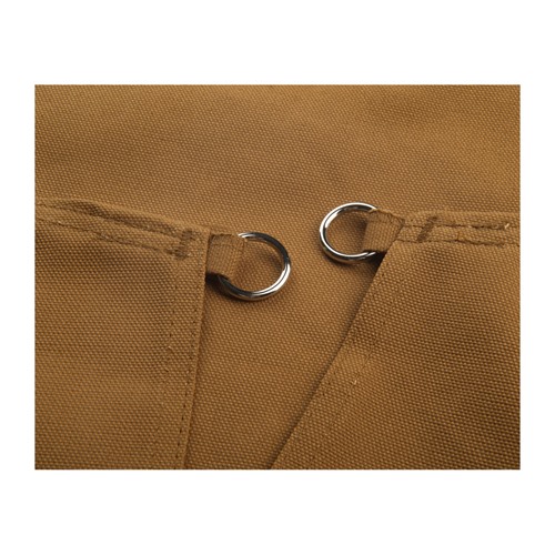 Alles ist stark verstärkt: Die Nähte sind umgeschlagen, doppelt genäht und sorgfältig verarbeitet. Alle Ecken und Belastungspunkte sind zur zusätzlichen Stabilität mit einem Bar-Tack versehen. Die Schürze kann in der Maschine gewaschen und getrocknet werden, ohne dass die Kanten sich wellen oder die Form verlieren.