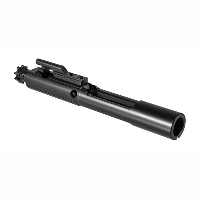 The Brownells Bolt Carrier Group is made by a well-established firearms industry manufacturer, made to our specifications. All components of the BCG are made in-house, under one roof, not outsourced to the lowest bidder. Even the firing pin and gas key, commonly outsourced components, are machined by our manufacturer. These Bolt Carrier Groups are rigorously inspected at the factory, for hardness requirements, fitment, cam path geometry, magnetic particle inspection of the bolt and more. Materials for these Bolt Carrier Groups are certified in batches and the dimensions are true to the most current military specifications. Proudly Made in the USA. Bolt is made from 9310 hardened steel, shot peened and magnetic particle inspected Carrier is machined from 8620 hardened steel Extractor is machined from 4340 steel and includes mil-spec extractor spring and black o-ring Gas Key is machined from 4130 steel and attached with Grade 8 screws, that are properly staked into a milled “valley” to ensure proper positioning Cam Pin is machined from hardened 4340 steel Firing Pin is made from 8740 steel, center-less ground and hard chrome coated Magnetic-particle inspected Bolt Extractor includes spring and rubber insert Includes torqued and staked gas key Functions with any cartridge based on the 5.56 NATO cartridge case The Brownells M16 5.56 Complete Bolt Carrier Group is designed to work easily and reliably in any AR-15 or M16 rifle chambered in 5.56x45mm, 300 AAC Blackout or .223 Remington. The Brownells M16 5.56 Complete Bolt Carrier Group comes with a bolt, bolt carrier, gas key, firing pin, cam pin and a firing pin retaining pin.