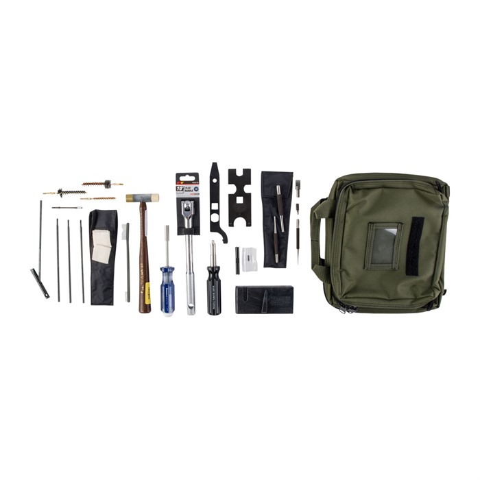 Das M16/M4 Feldpaket ermöglicht eine vollständige Waffenzerlegung für routinemäßige Wartung und Reparatur und enthält zusätzlich Werkzeuge für Sichtanpassungen und die Feldreinigung des Colt M16/M4. Es beinhaltet spezielle Werkzeuge zum Entfernen der Laufmutter, des Mündungsfeuers und der unteren Empfängererweiterung, ohne dabei Teile des Gewehrs zu beschädigen.
