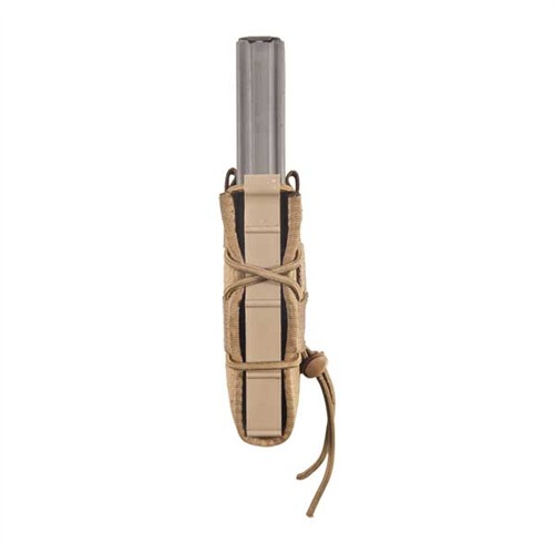 High Speed Gear’s TACO Rifle Molle mounted magazine carrier uses injection molded polymer sides, Cordura™ front and back, and shock cord lacing to lock just about any rifle magazine into place. USGI, HK, PMAG, ARC, FAL, AK 30/ 40, LR20 and M14 magazines are all held securely and deployed easily and silently on demand. The TACO® Rifle magazine carrier even works for certain radios, flash bangs and smoke grenades and provides this versatility while taking up only 3” horizontal inches on your mounting platform. The pouch maintains a positive, adjustable grip on its contents without additional securing systems. However, if additional retention is desired webbing tabs are sewn in on the top for use of "over the top" bungee retainers and loop Velcro is sewn on the interior if the users wishes to use adhesive hook on the magazine.