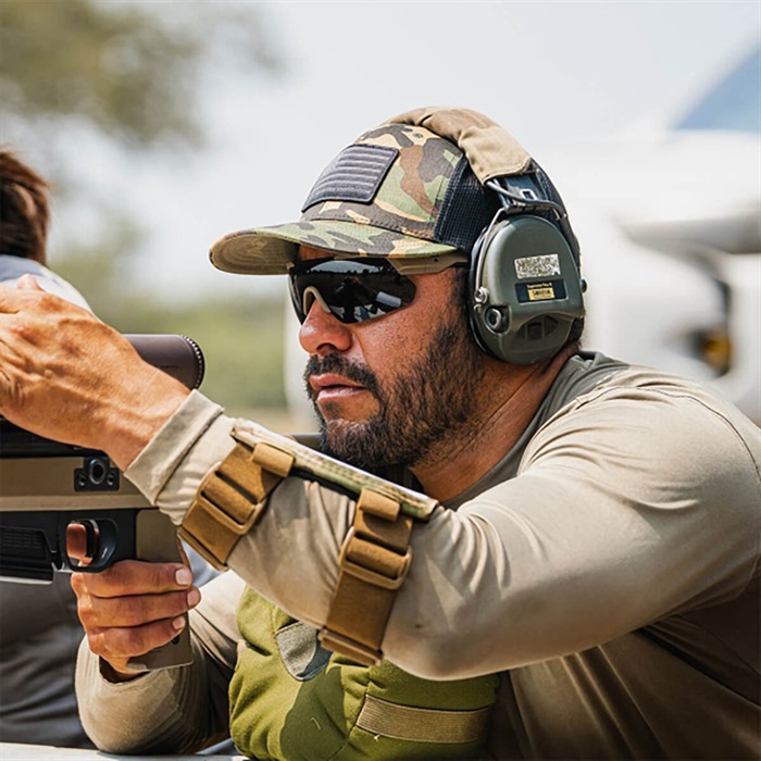 - Niedrigprofil-Tempeldesign sorgt für Komfort und Funktionalität beim Tragen von Hüten oder Gehörschutz.