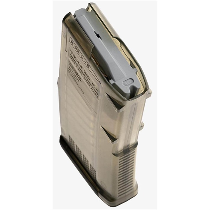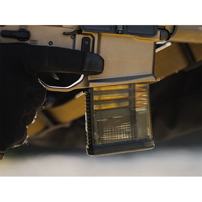 MAGPUL® TMAG® GEN M3 RIFLE MAGAZINE FOR AR-15/M4 The TMAG AR/M4 GEN M3 magazine is a highly reliable, translucent magazine for STANAG-compatible weapons chambered in 5.56x45 NATO/.223 Remington. Molded from a translucent material with an ODG/ Smoke hue, it provides shooters visibility to verify various ammunition types as well as round count. Featuring ribbed front and rear straps for improved purchase during magazine changes, the sides are left smooth to ensure visibility. Like the rest of the GEN M3 family of magazines, the TMAG incorporates similar internal geometry that translates into unmatched reliability when firing. The four-way, anti-tilt follower is paired with a durable USGI-spec, stainless-steel spring with a painted coil, which maintains the “gas gauge” capability from Magpul’s Window magazine product line. The magazine body is clearly marked to show approximate round counts when inserted in a magazine well, and the paint-pen dot matrix allows for aftermarket markings to be applied by shooters. The TMAG’s low-profile floor plate also allows for compatibility with the full line of Magpul floor-plate accessories. The TMAG is optimized for Colt-spec AR15/M4 platforms, but modified internal and external geometry also permits operation with a range of other weapons such as the HK®416 / MR556A1 /M27 IAR, FN®SCAR™MK 16 / 16S, and others. FEATURES Compatibility Wide compatibility with most 'STANAG 4179' platforms such as the AR15, M4, M16, SCAR MK16/16S, HK416, MR556, M27 IAR, IWI Tavor, and others Translucent body for round identification and capacity information Ribbed front and rear straps for improved grip Four-way anti-tilt follower and USGI-spec, stainless-steel spring enhances reliability Painted coil and marked magazine body provides visual quick reference for capacity Paint-pen dot matrix allows for additional metrics for personal preference when looking for round-count indicators Accepts current aftermarket Magpul floor-plate accessories Functions in a variety of popular platforms SPECS Caliber 5.56x45mm / .223 Remington Platform AR15, M4, M16, SA-80