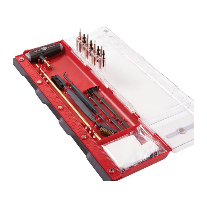 813119012662 Verbessere dein Reinigungserlebnis mit der weltweit ersten Master Cleaning Station für Handfeuerwaffen von Real Avid. Entwickelt für die umfassende Reinigung von .22 / 9mm / .357 / .38 / .40 / .45 Kaliber Handfeuerwaffen. Sie kombiniert eine Next-Gen Reinigungsmatte mit einem intelligent gestalteten Reinigungsset, das mit einer umfangreichen Auswahl an handgunspezifischen Reinigungswerkzeugen gefüllt ist. Sie hält leicht zu verlierende Waffenbestandteile organisiert, während du arbeitest. Sie bietet eine große Arbeitsfläche für eine vollständig zerlegte Waffe und lässt sich dennoch für eine kompakte Aufbewahrung in der mitgelieferten Tasche zusammenrollen.Nachbestellt, Lieferzeit ca. 4-12 Wochen aus dem Lager USA.