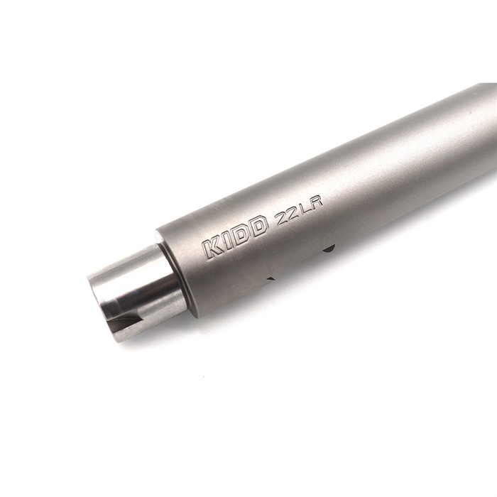 Ein proprietärer Kammerreamer wird verwendet, um sicherzustellen, dass die Patrone und das Geschoss reibungslos zuführen. KIDD-Läufe sind für .22 LR Munition kammeriert und haben eine 1:16 Drehung. Das Mündungsgewinde beträgt 1/2"-28 und ist mit einer Schutzkappe erhältlich.